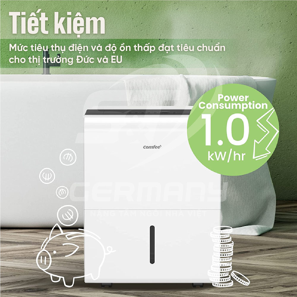 Với độ ồn chỉ khoảng 48 dB, Comfee MDDP-50DEN7 hoạt động êm ái, không gây khó chịu ngay cả khi dùng trong không gian làm việc hoặc sinh hoạt. Máy sử dụng máy nén khí (compressor) cao cấp giúp tiết kiệm điện năng, đảm bảo hiệu quả hút ẩm cao mà chi phí vận hành thấp.
