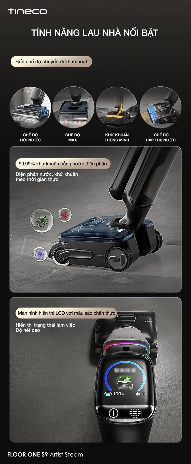 Máy hút bụi lau nhà Tineco Floor One S9 Artist Steam