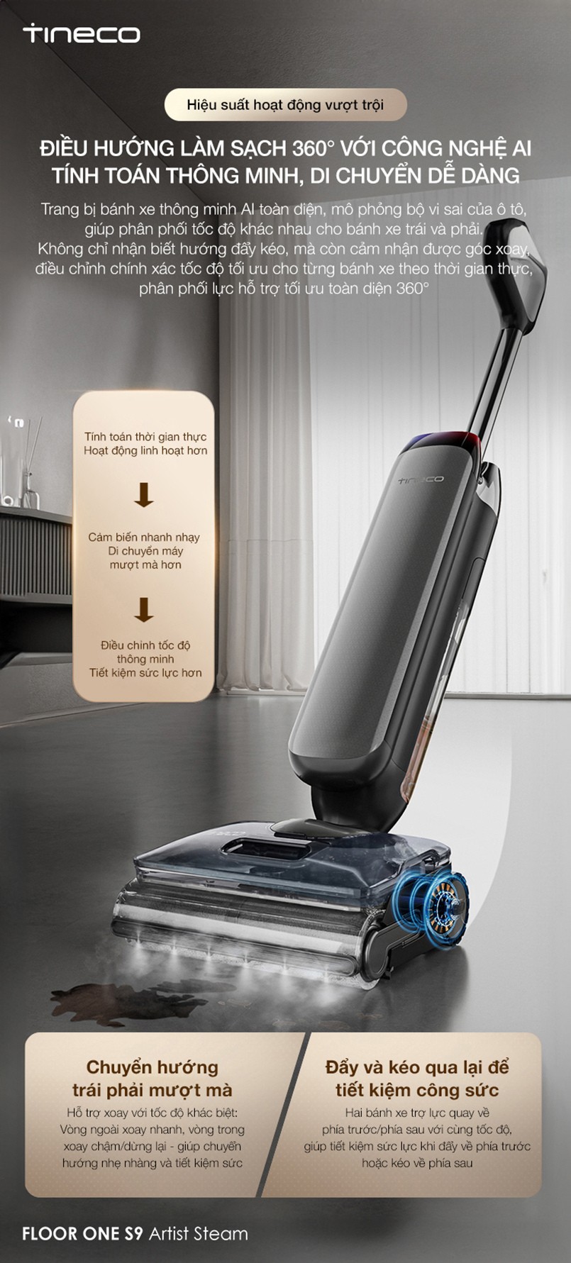 • Công nghệ bánh xe AI điều hướng 360° – Di chuyển linh hoạt, nhẹ nhàng.