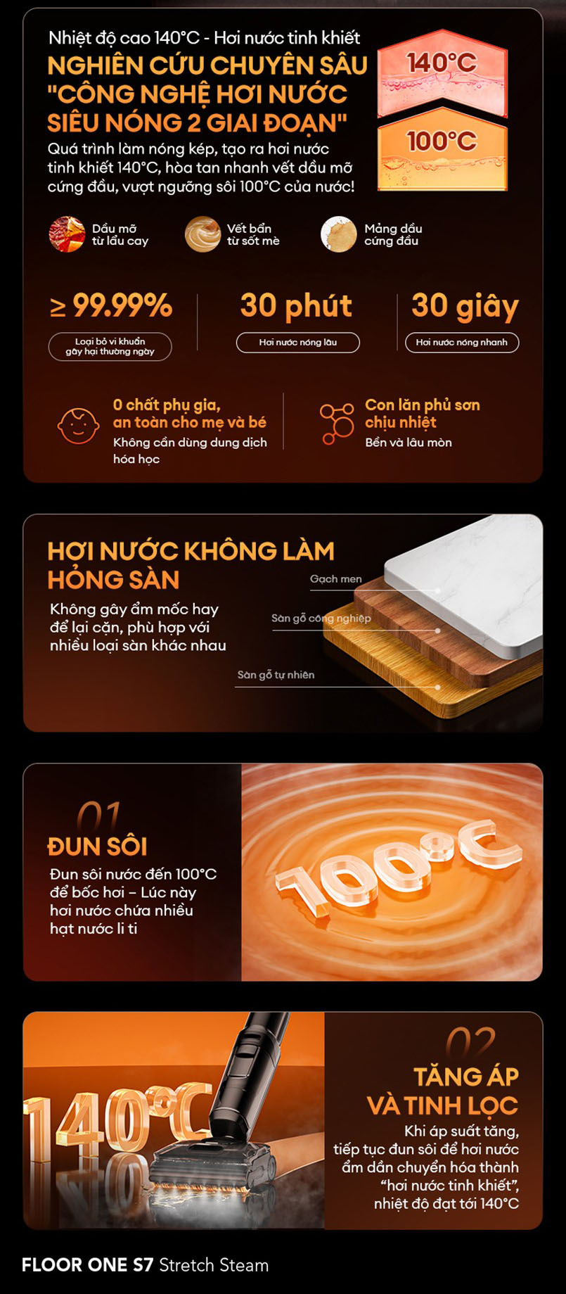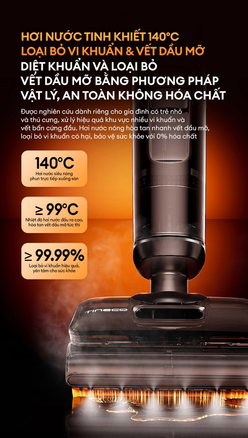 • Công nghệ hơi nước 140℃ làm sạch vết bẩn cứng đầu