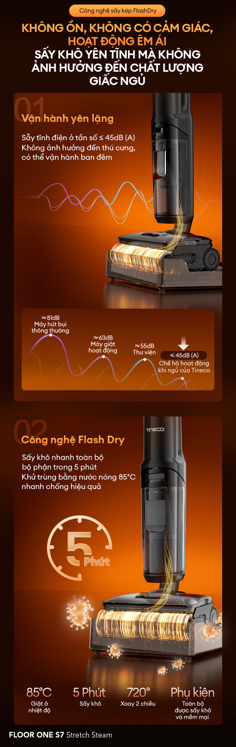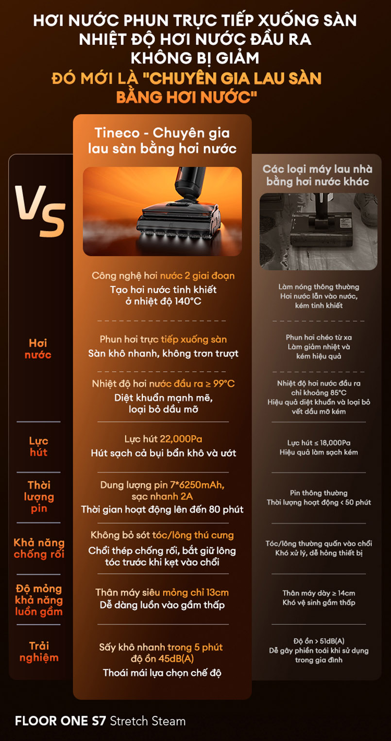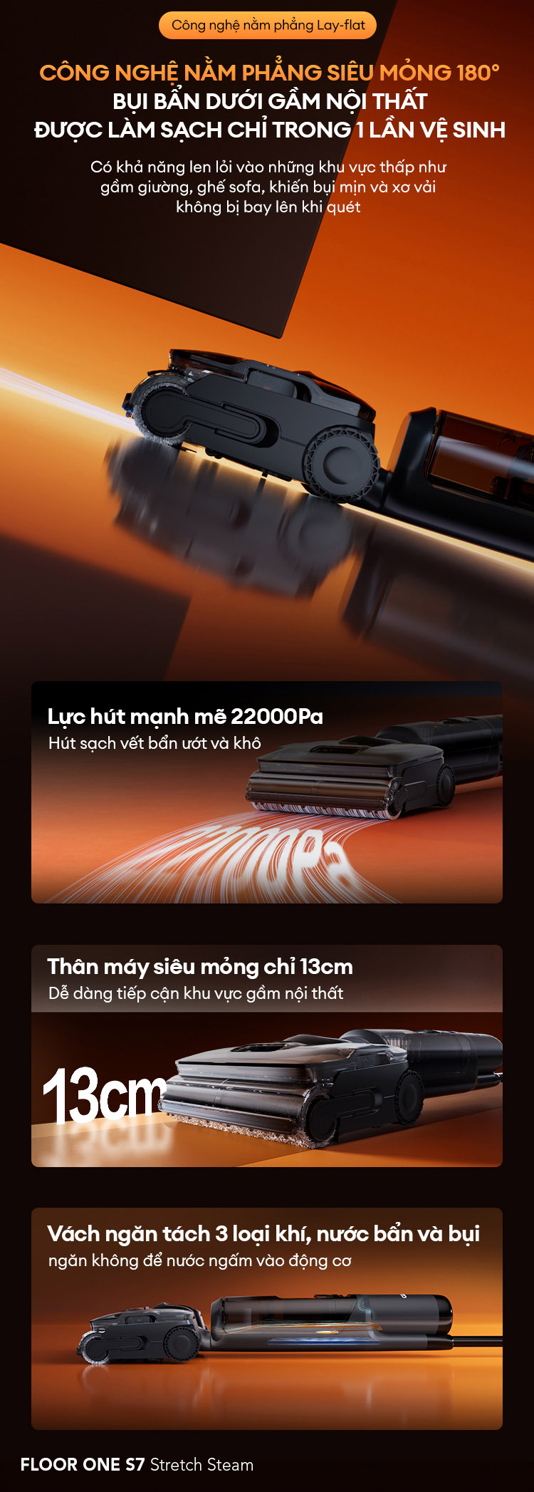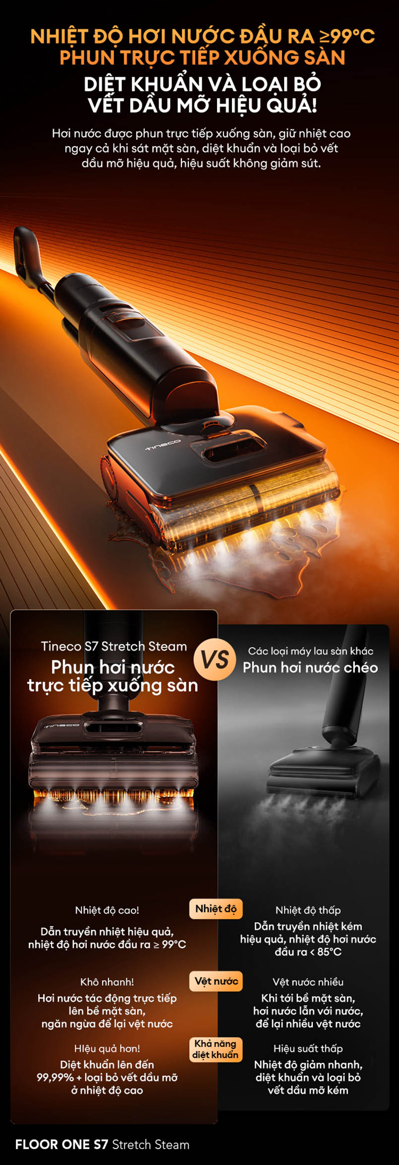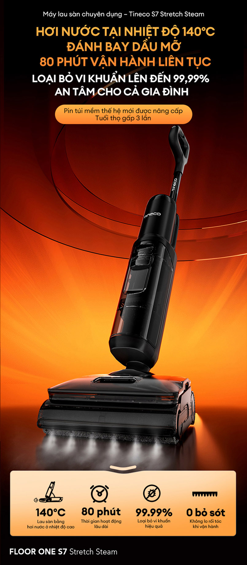 Ưu điểm nổi bật của máy hút bụi lau nhà Tineco Floor One S7 Stretch Steam