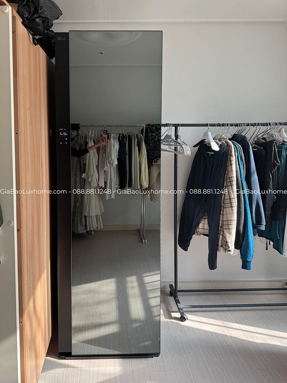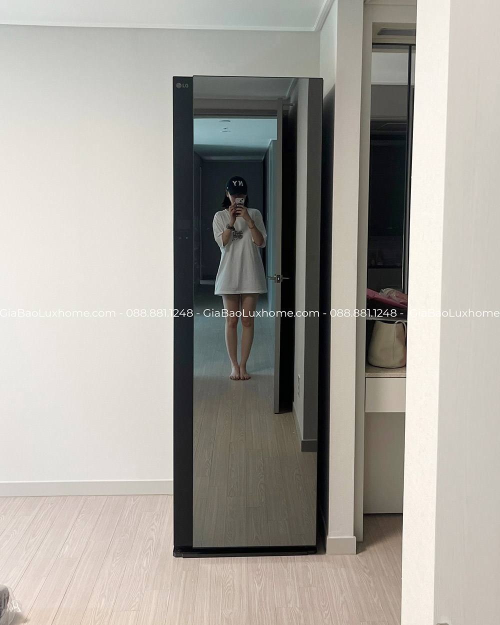 Tủ giặt khô LG Styler SC5GMR8GH khác hẳn so với những mẫu máy thuộc thế hệ trước. Mặt trước phủ lớp gương đen không chỉ mang đến sự sang trọng, thời thượng cho không gian mà còn có thể sử dụng như một tấm gương soi độc đáo.